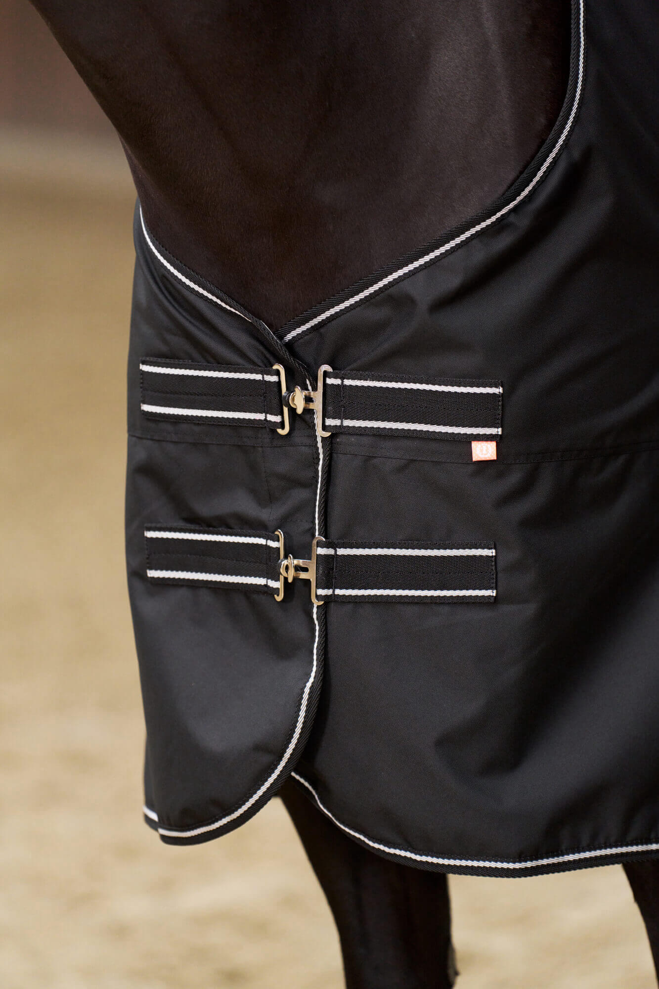 - der doppelte T-Brustverschluss und verstellbare Kreuzgurte halten die Decke an ihrem Platz