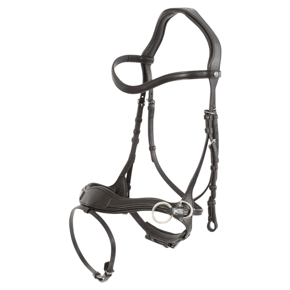 • vollständig gebisslose Einstellung, bei der die Zügel an den D-Ringen des Nasenriemens befestigt werden und sanfte Kommunikation durch Nasendruck ermöglicht wird