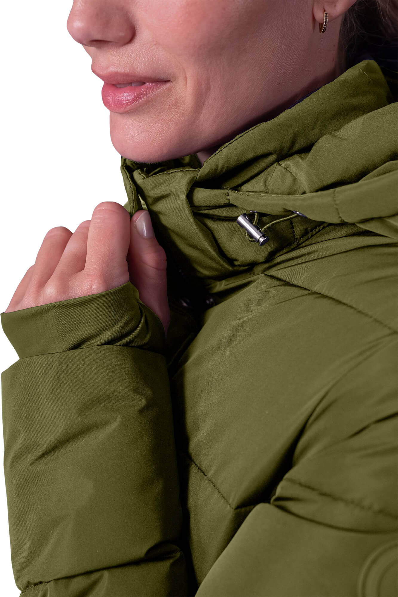 - elastischer Kordelzug für die Kapuze mit silbernen Stoppern
