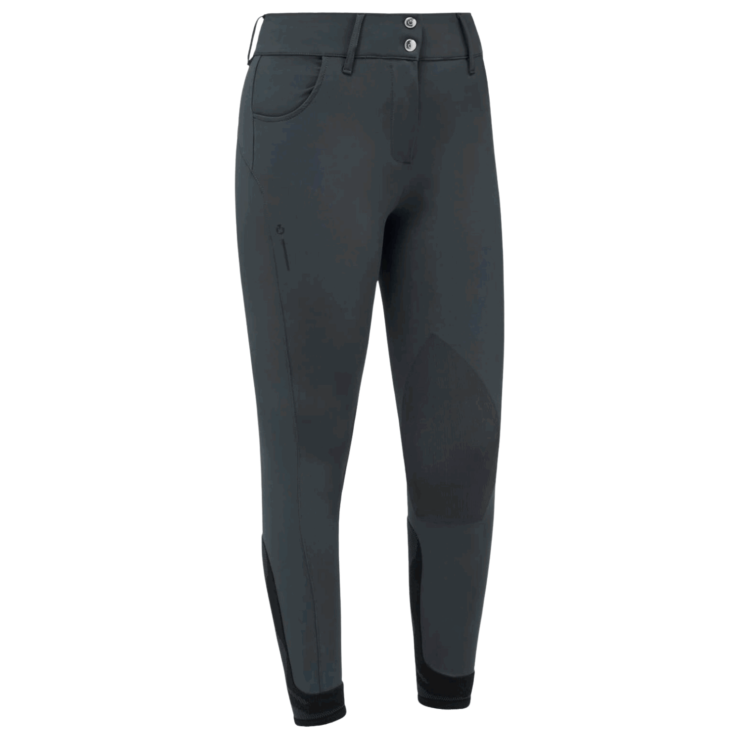 Bei der Damenreithose RS Breeches High Waist von Cavalleria Toscana handelt es sich um ein besonders Modell mit vielen funktionellen Eigenschaften. Das energetisierende Kompressionsmaterial verbessert die Durchblutung und reduziert eine Ermüdung der Beine. Ein besonderes Highlight ist die Gripper Yarn Technologie, hier ist der Knee-Grip direkt in das Gewebe eingearbeitet, wodurch ein sicherer Halt im Sattel gegeben ist. Der Stoff wurde einer speziellen Behandlung unterzogen, wodurch er besonders widerstandsfähig gegen Schmutz und Abrieb ist. Dank des Vier-Wege-Stretch-Materials ist die Reithose elastisch und atmungsaktiv, weshalb der Reiter ein angenehmes Tragegefühl vermittelt bekommt. Des weiteren verfügt sie über enganliegende Beinabschlüsse wodurch keine störenden Falten im Reitstiefel entstehen. Zudem verfügt sie über zwei praktische Einschubtaschen und große Gürtelschlaufen, in welche jegliche Gürtelgrößen passen. Optisch besticht die Reithose durch das Firmenlogo auf der Außenseite des Oberschenkels und den farblich abgesetzten Beinabschlüssen.