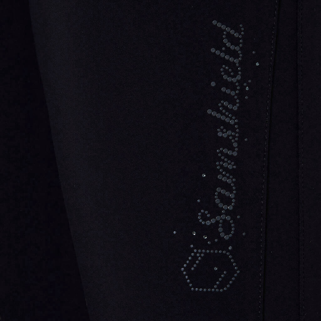- Details auf der Rückseite und Logo mit Swarovski-Kristallen und Gürtelschlaufen aus Swarovski-Kristallband
