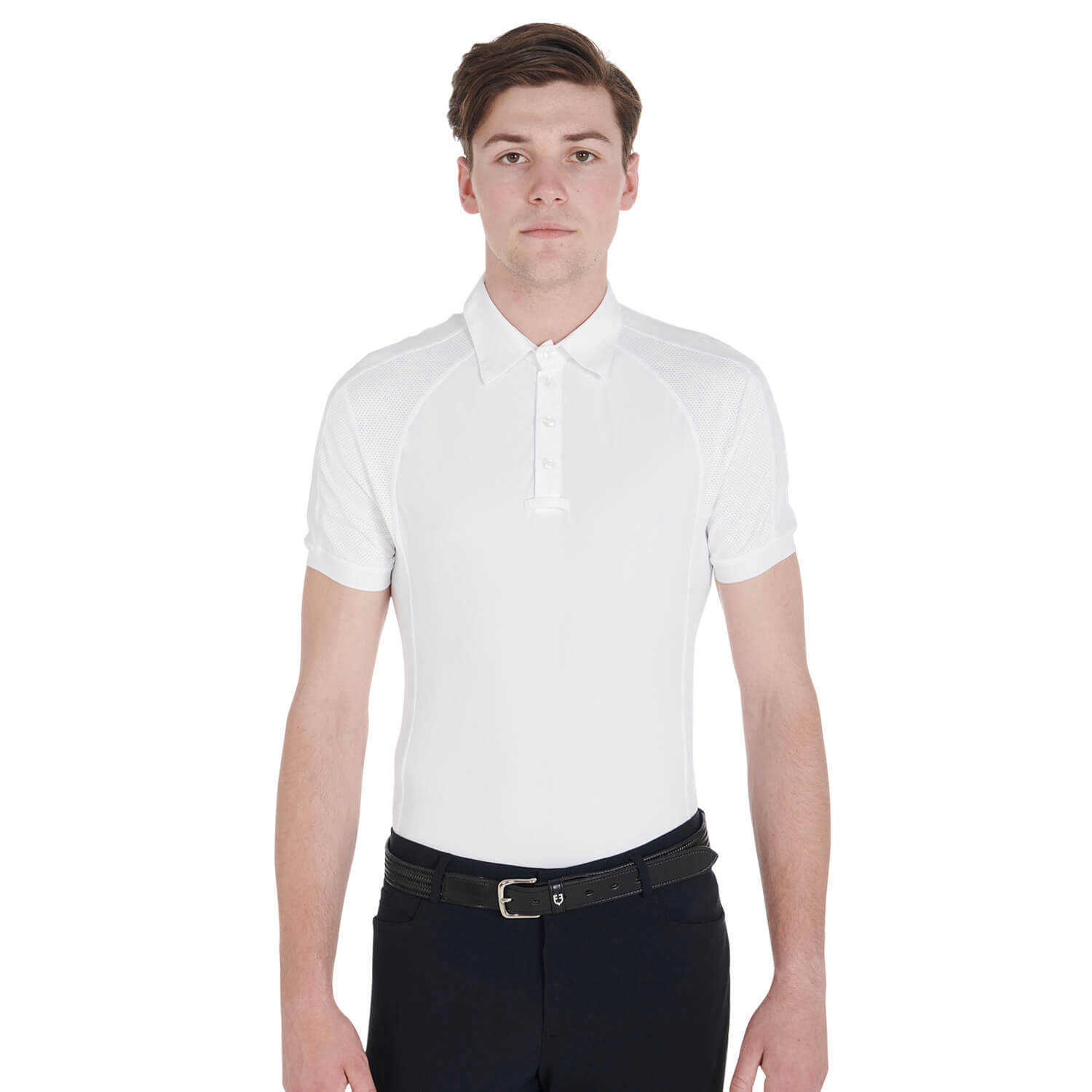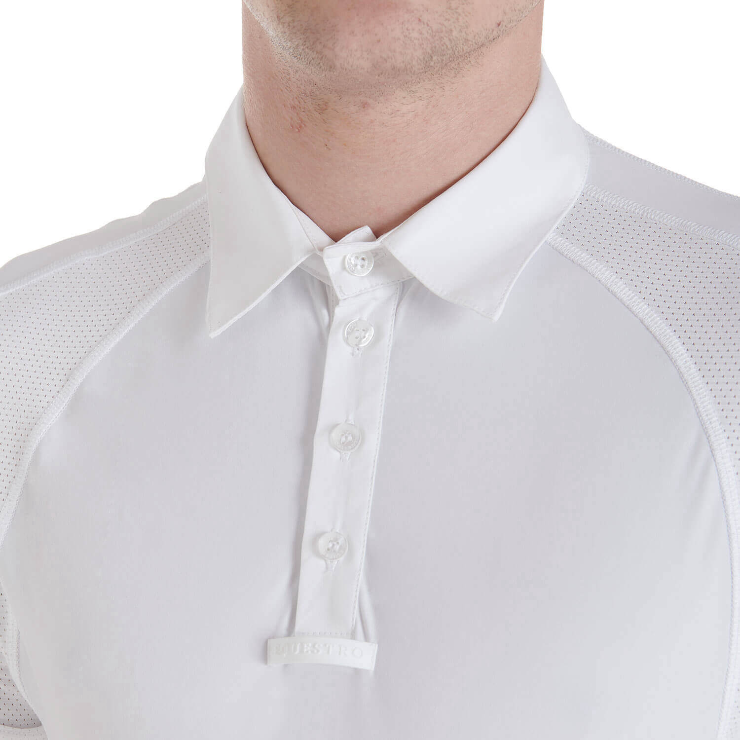 - eng anliegendes Poloshirt aus elastischem, atmungsaktivem Funktionsstoff